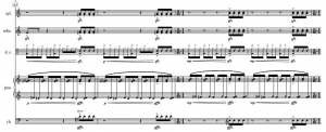 As a musician it’s always nice to do something “different”, especially when the piece is not different just for the sake of it, but really works as well! For this concert, that piece is [Fuse] by Nick Omiccioli. It’s interesting for many reasons, not least are some of the rarely seen time signatures that the composer uses in the piece (see photo).